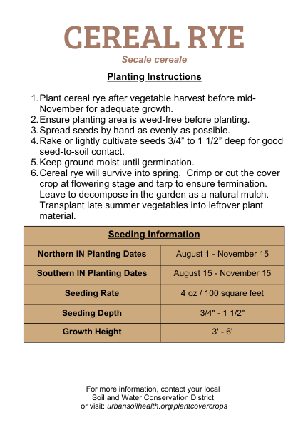 - Plant cereal rye after vegetable harvest before mid-November for adequate growth.