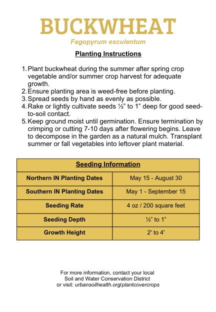 - Plant buckwheat during the summer after spring crop vegetable and/or summer crop harvest for adequate growth.