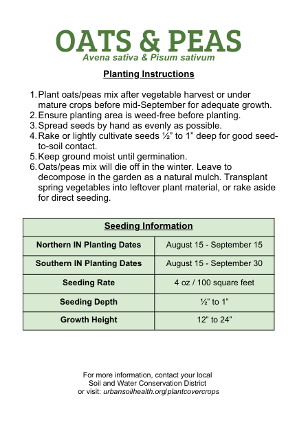 - Plant oats/peas mix after vegetable harvest or under mature crops before mid-September for adequate growth.